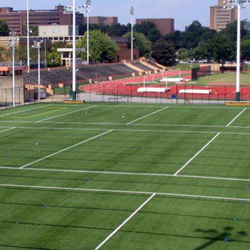 While minimal maintenance is required, artificial turf allows you to leave mowing, watering, fertilizing, and weeding behind. It's a practical option for many sports venues, including those with indoor facilities or those looking to scale back on their daily maintenance. Artificial turf is particularly beneficial if your area sees harsh winters; this turf is always in season and you don't have to worry about thinning, dying natural grass during the colder weather.