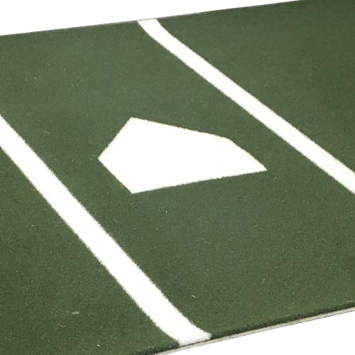 Each faux grass baseball mat has batter's box lines and a home plate, so the field looks normal during practice time while this batting practice mat turf is in place. The artificial grass baseball plate mat measures 6 by 12 feet, so it has plenty of coverage area for a batting practice mat turf.