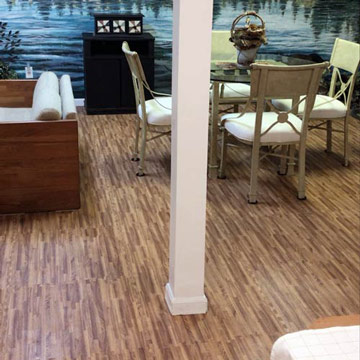 John and his daughter started the installation at a pole in the middle of the room and expanded out towards the wall in increments of 2 feet. Once reaching the walls, they cut off the ends of the tiles to finish the wall-to-wall installation.