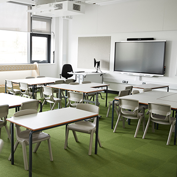 Designed for high-traffic areas like classrooms, the tiles can withstand foot traffic as well as the weight of tables and chairs.