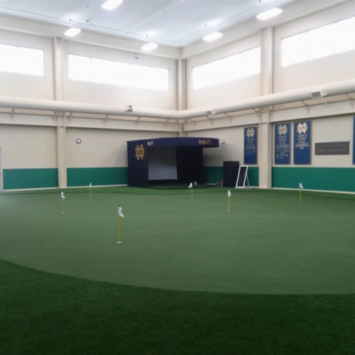 Building a putting practice area indoors is easy, as several types of putting green turfs work nicely for indoor use.Additionally, the synthetic turf must have a short pile height that allows the golf ball to roll easily along the surface. If the pile height is too high, the golfer will use too much force to putt the ball, creating bad habits.