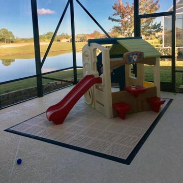 If you prefer a casual looking, low maintenance sunroom flooring option, this one would be a good choice. This tile is made of polypropylene and has a soft touch underside that offers a great grip to any floor.