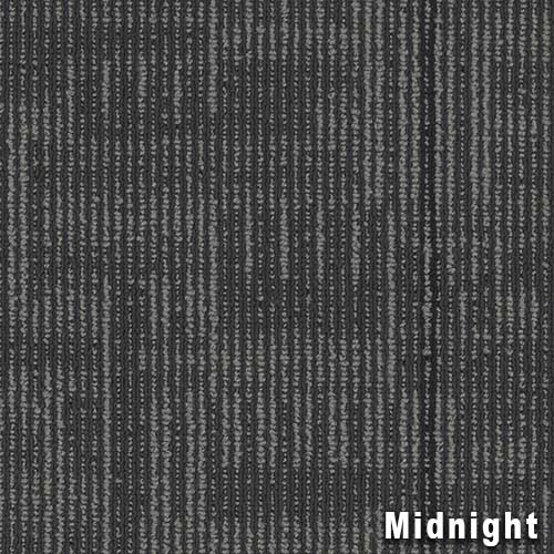 Carpet tiles have a random line pattern. There can be one or two color lines on the tiles. The color lines are not always in the same spot on the tile and can be closer together or farther apart. There will always be a mix of the different patterns within each carton.