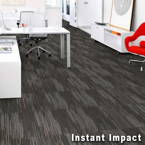 Online Commercial Carpet Tiles 3.9 mm x 24x24 Inches Carton of 24 are constructed for durability with EnviroStrand SD PET carpet fiber and UltraSet Matrix backing made partially of polyolefin. Designed with an intriguing striped pattern, they come in a variety of colors. Eco-friendly and high-performance accented carpet tile is functional yet adds a touch of elegance to a room.