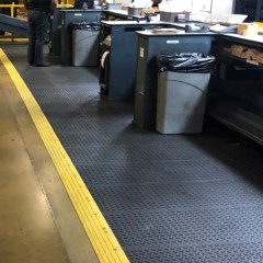 This innovative product utilizes a versatile edging system for simple flooring layouts and installation. Each interlocking industrial floor tile has counter-sunk holes for temporary or permanent installations and raised bars for added slip prevention.