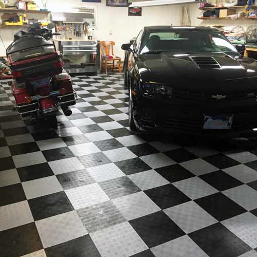 When you need one of the most durable types of floors for use in a garage, our TechFloor Premium Tile With Traction Top is an outstanding choice. This Made-in-America tile has a raised pattern across the surface, giving people walking across it a sure footing while also delivering long-lasting materials.