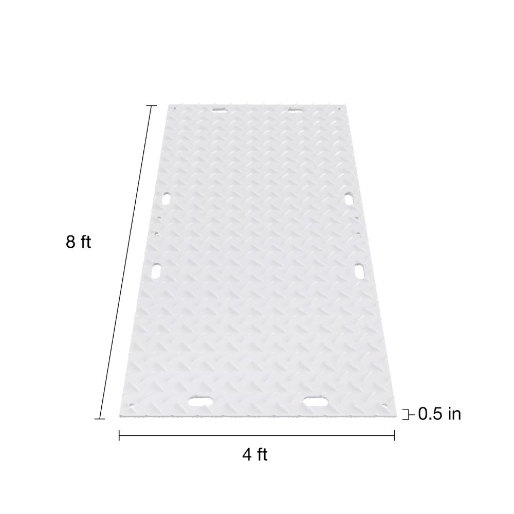 This mat is reversible and features a diamond side to help prevent equipment from getting stuck and a pedestrian walkway side that maximizes traction for foot traffic. You can use it to create light walkways, a temporary road, or a driveway area for vehicle access.