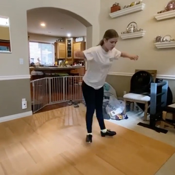 “I was a little concerned that it would be too flexible on top of the carpet or that Brooke would catch her feet on the seams, but none of that has been a problem,” Megan said. “Brooke has virtual lessons almost every day of the week and in between she uses it to practice.”