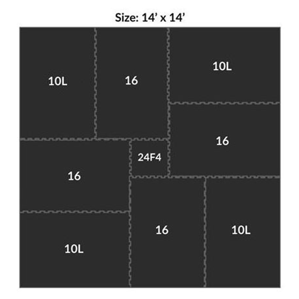 This pre-sized interlocking stall mat kit is designed to be easy to install. After installation, the six included mats create a layout measuring 13 feet 6 inches x 13 feet 6 inches. The rectangular 4x6 foot mats create a space almost measuring 14x14 feet.