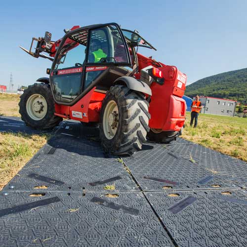 Providing access to areas needing power or renovation can sometimes be tricky if travel over anything other than heavy-duty pavement is necessary - like mud, dirt, or soft grass. Not only can heavy equipment sink into the ground and cause damage to it, but it can also tip or get stuck on less-than-stable surfaces, adding hours of extra work and the likelihood of injuries, fines, and additional expenses. The use of driveway, concrete, and ground protection mats provides a solid surface for a temporary roadway or driveway to eliminate all of these potential problems.
