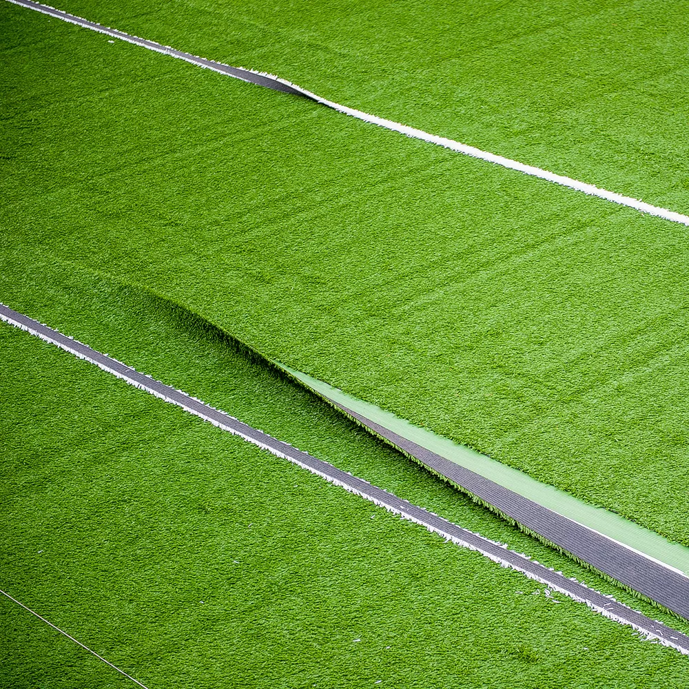 Before you install the indoor field turf, plan its layout. You should position the turf so that the seams run parallel with the main flow of traffic within the area. Create a seaming diagram so you know just where the turf seams will be located.