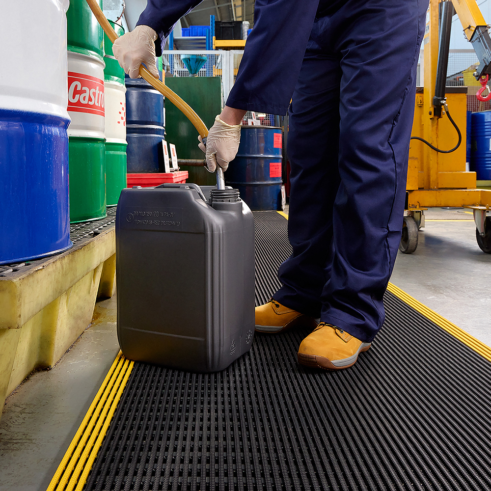 Vynagrip Plus is your ultimate defense against slippery surfaces. This heavy-duty workplace mat is specifically designed to tackle any kind of liquid hazard. With its diamond tread pattern, Vynagrip Plus ensures exceptional traction, reducing the risk of slips and preventing skidding for both individuals and equipment. Vynagrip Plus Matting is equipped with 4 safety yellow top bars on each length side of the roll, enhancing safety awareness.
