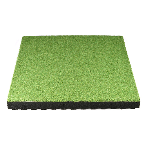 Measuring 2.5 inches thick, this synthetic turf tile is a highly durable choice for your commercial gym flooring. They are suitable for interior and exterior installations and make for a versatile workout installation. The turf grass layer is fusion-bonded to the rubber base layer for enhanced durability.