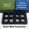 The RageTurf dBTile will connect with the dBTile Gym Floor Tiles for a complete gym flooring system. The Quad Blok connecting system secures the tiles together with adhesives.