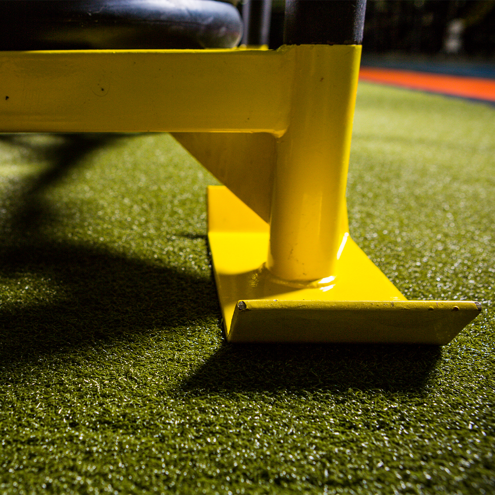 This indoor artificial turf grass flooring is a versatile solution for your gym. It's suitable for sled work and footwork drills and can also handle moderate free weight drops, making it a perfect fit for both functional training and weight room flooring.