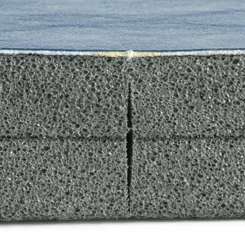 The foam underneath the vinyl surface layer is made of a cross-linked polyethylene foam core. This closed-cell foam is highly durable and won’t absorb water, so you don’t have to worry about potential mold or mildew growth inside the foam.
