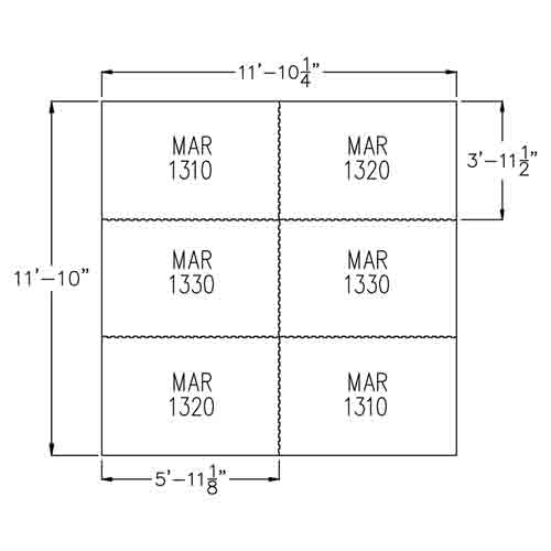 Since the rubber can expand and contract with changing temperatures, the kit is designed to leave a slight gap between the mat edges and your wash stall walls. Once assembled, the kit’s actual dimensions are 11 feet 10-1/4 inches by 11 feet 10 inches.