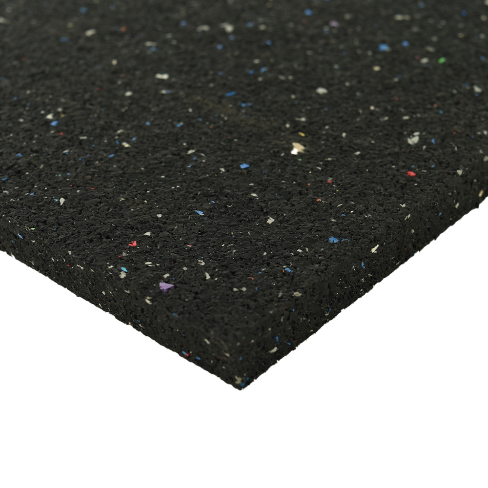 Durable regrind rolled rubber is an economical 3/8 inch flooring option