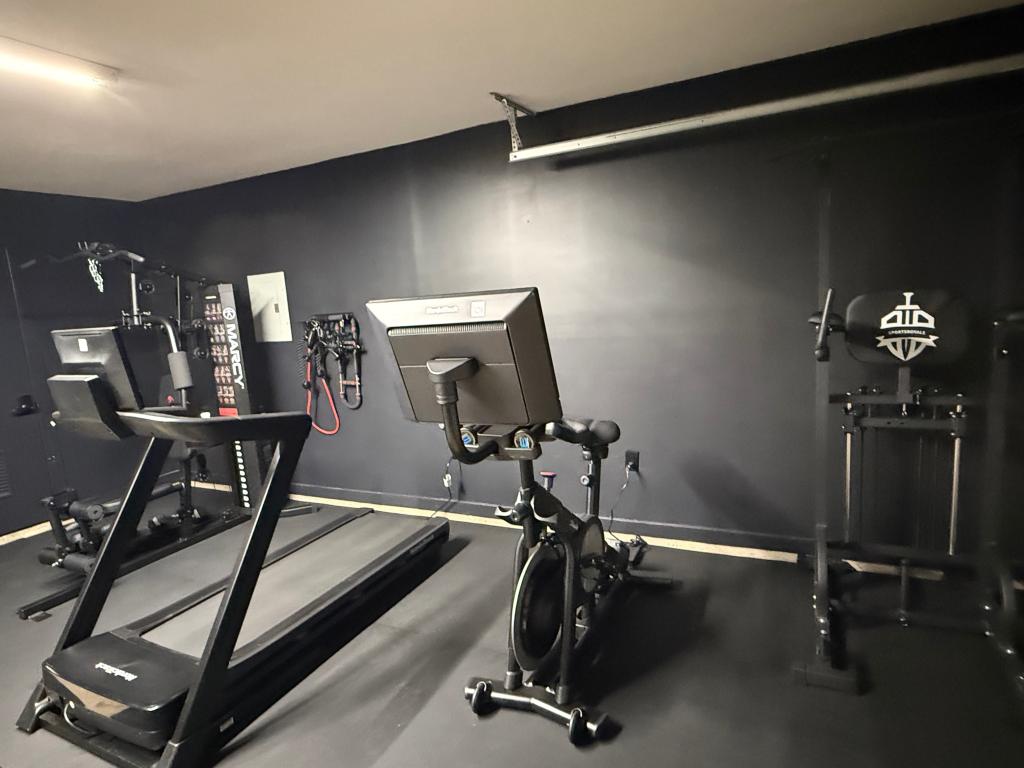- Commercial-quality flooring supports workout gear
