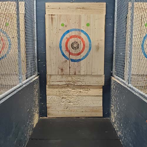 We also use other smaller pieces hung above the targets to act as a rigid “net”, catching bad throws and preventing damage to the areas above the targets.