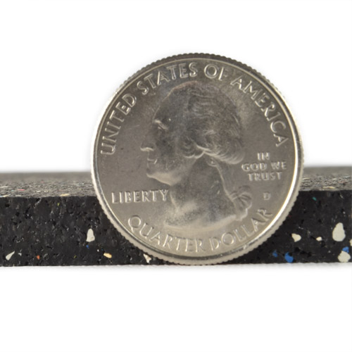 If you need a more interesting design in your rubber flooring for gym spaces, the color flecks against the black background in our roll of rubber can make a noticeable difference.