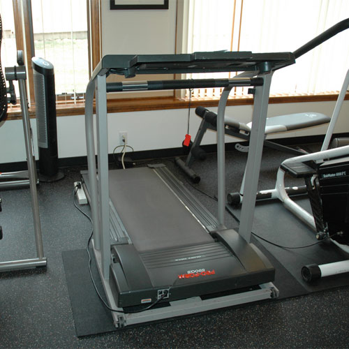 Our 3/8-inch weight room flooring is made to handle all kinds of exercise equipment. It’s thick enough to protect the subfloor from most dropped weights. It also can deliver traction for workout equipment, so stationary bikes and treadmills won’t slide around during use.