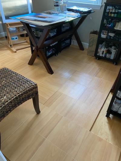 This is a great product. Looks great and easy to install. The only reason I gave it 4 stars instead of 5 is because I needed to install it over carpet, and I’m getting some minor “sagging” in the middle of the tiles. However, the company did warn me that this could happen on soft carpet, so I was fully aware. Even with that, it does what I need it to do, and I’ve got a great, inexpensive, instant “hardwood “ floor for my at-home gym.