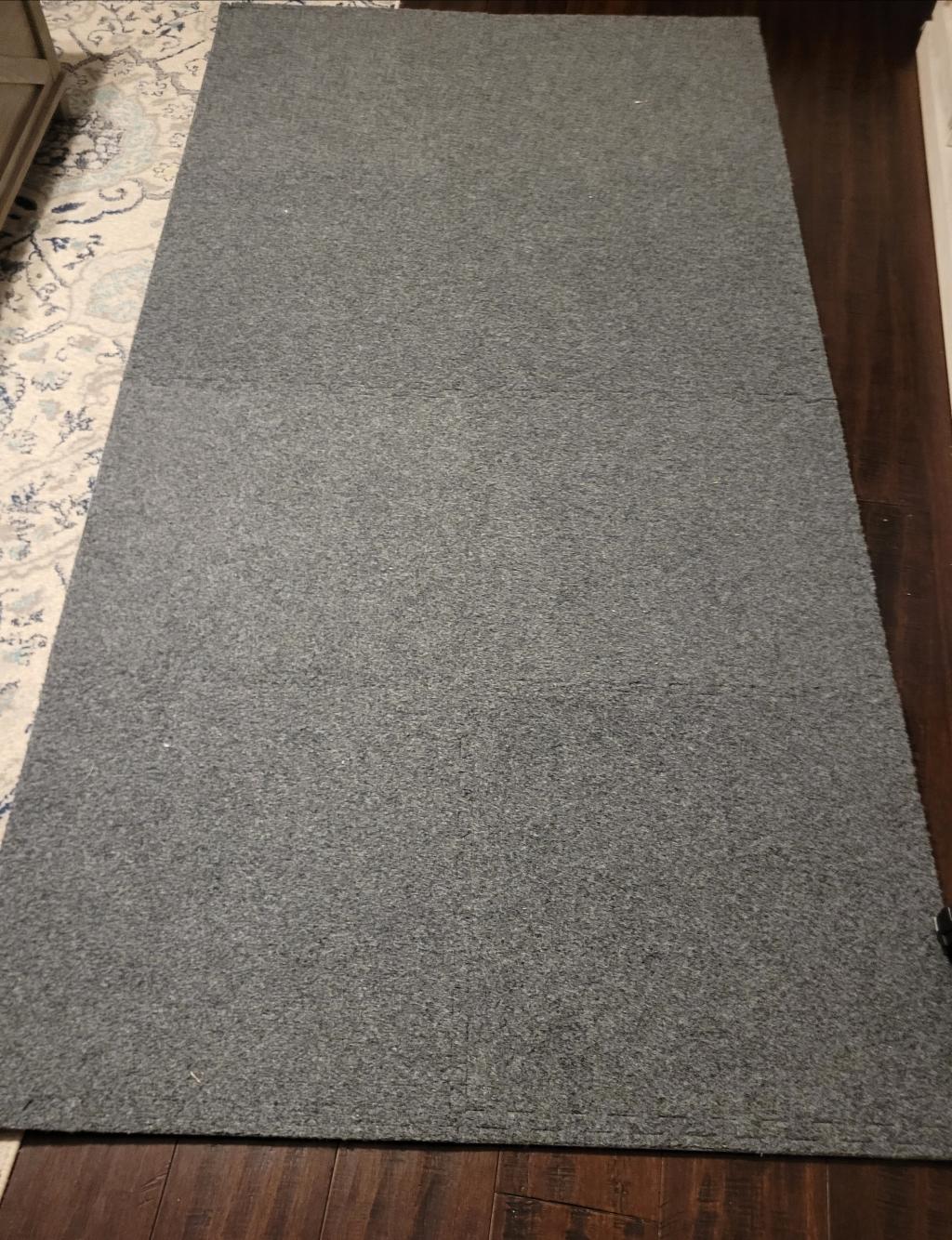 I'm building a golf simulator in my garage; there's plenty more work to come, but the assembly of the carpet tiles was the easiest part. I already had regular black foam gym floor tiles and didn't like the look, and I wasn't sure that laying my own carpet or grass turf over the floor tiles would look good either. Real carpet in the garage would be permanent and a lot of work, so these carpet tiles were the perfect solution for my needs. The seams hardly show in action, especially in low light.