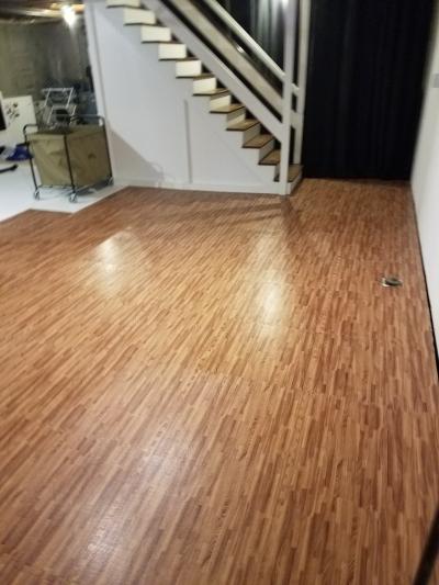 These mats are awesome! The light colored wood grain looks so good. They made the basement look bigger, more open and so much more inviting. Plus, they feel wonderful. So much better then the concrete and carpet. If the sump pump fails again, we'll just pull them up, dry them & the concrete out and lay them down again. Well worth the $1,000 for 552 square feet + 5% overage. Thanks again Greatmats!!!