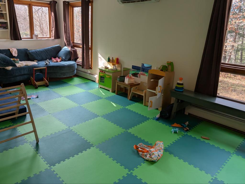 Perfect playroom mat. Great price and not from schmamazon. I bought a first batch and immediately decided to get even more and just cover the whole floor. First batch had more of a smell - after removing the edge pieces - so make sure to check and take them off before leaving outside for a day to let air out especially if its winter when its less ideal to open windows. The second batch didn't smell, so its variable. Cleaning has been super easy!