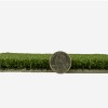 Each roll of turf has a 1/2-inch pile height in the nylon blades, giving them a look that resembles real, tightly cut grass. The nylon blades attach to a 3mm foam backing pad layer, which is about 1/8 inch thick.