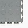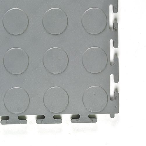 This commercial floor tile features a coin-top pattern that provides a pleasing visual element and creates slip resistance. The coin pattern is molded into the tile surface to prevent it from breaking loose under stress. The anti-slip pattern is particularly important for PVC flooring since PVC doesn’t absorb moisture, which can create a potential slip hazard.