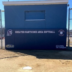 Graphics are available.This sports venue padding is made with exterior-grade wooden strand board and 3-inch-thick polyurethane foam laminated together using a two-part bonding process. The foam and wood material are then wrapped with 19-ounce vinyl on the front and sides and secured with galvanized steel staples to the wood back, for a total thickness 3-23/32 inch.