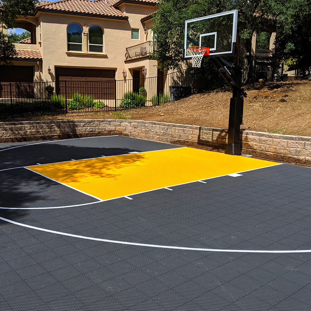 These foundation panels offer more shock absorption than concrete, plus they’re permeable to allow for drainage. They interlock together for an easy, DIY-friendly installation, and you can place your sports tiles directly on top.